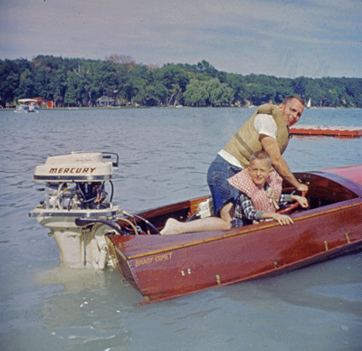 In the 1930s, ‘40s, and ‘50s, Bills Lake residents were occasionally treated to the sight and sound of a Brady Comet, a racing boat powered by a Johnson PR50 engine which zipped around the lake under an astonishing 22 HP, this at a time in which most boat motors were in the single digits. The boat was owned and operated by resident Chet Grant who raced it in various events around southern Newaygo County and brought home more than his share of trophies. The boat was housed in a fieldstone boathouse by the lake in the Geronimo 1 zone (still standing but the boat isn't there anymore).
